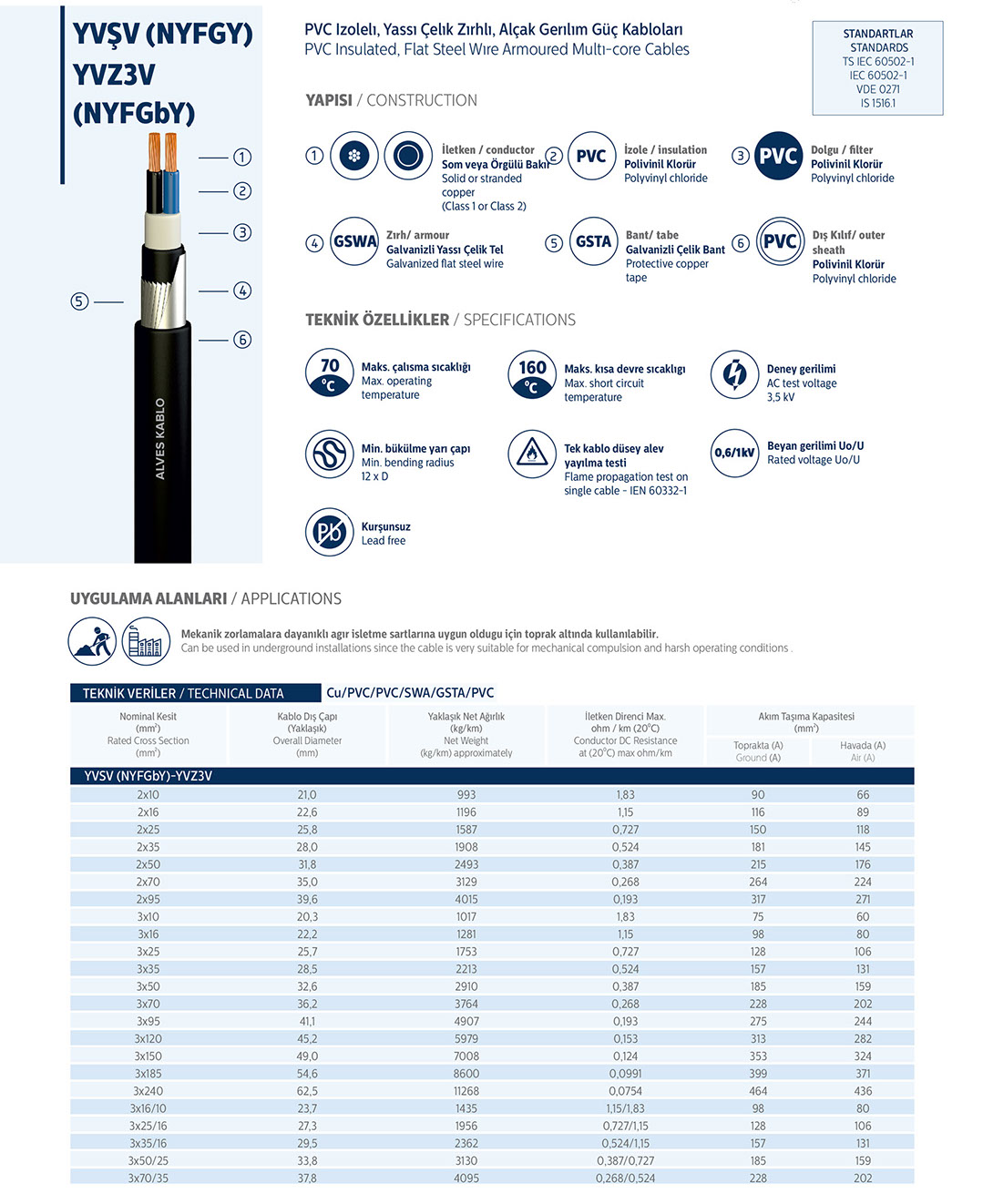 PVC İzoleli, Yassı Çelik Zırhlı AG Güç Kabloları