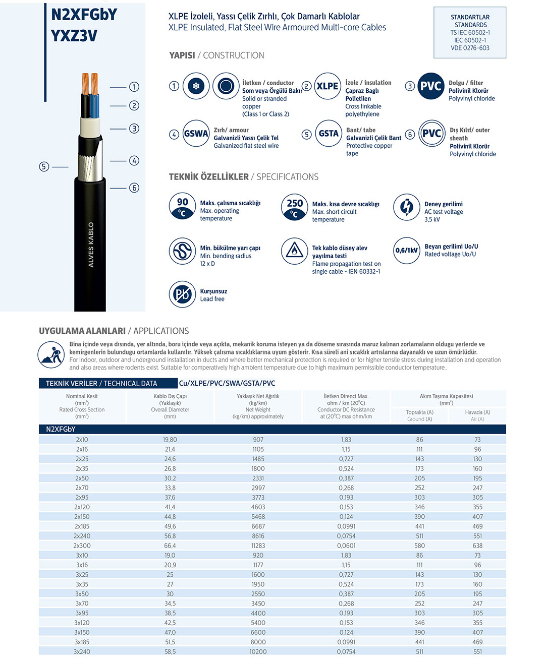XLPE İzoleli, Yassı Çelik Zırhlı Çok Damarlı Kabloları